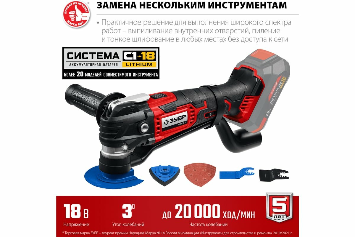 10 цен на Реноватор ЗУБР 18 В, без АКБ, набор насадок МФИ-18 Н
