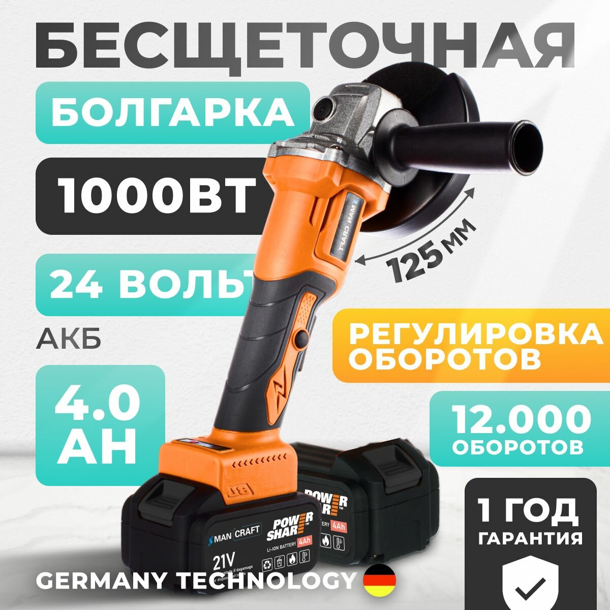 Ушм болгарка аккумуляторная 125 TEXAMANCRAFT угловая шлифовальная машина бесщеточная с 1 акк информация: