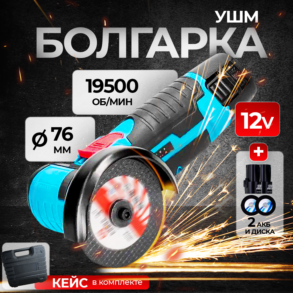 10 цен на Мини УШМ аккумуляторная, Болгарка 19500об/мин 2 акб