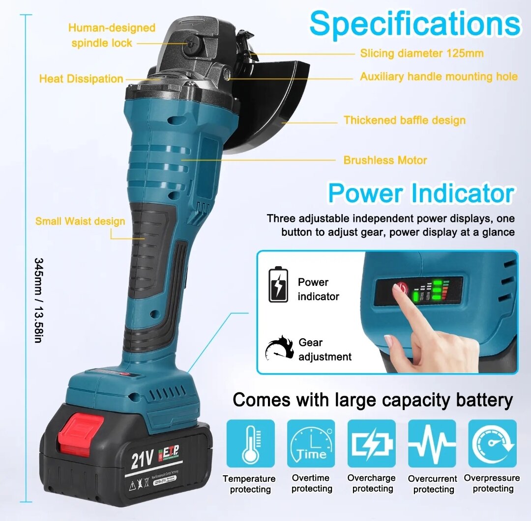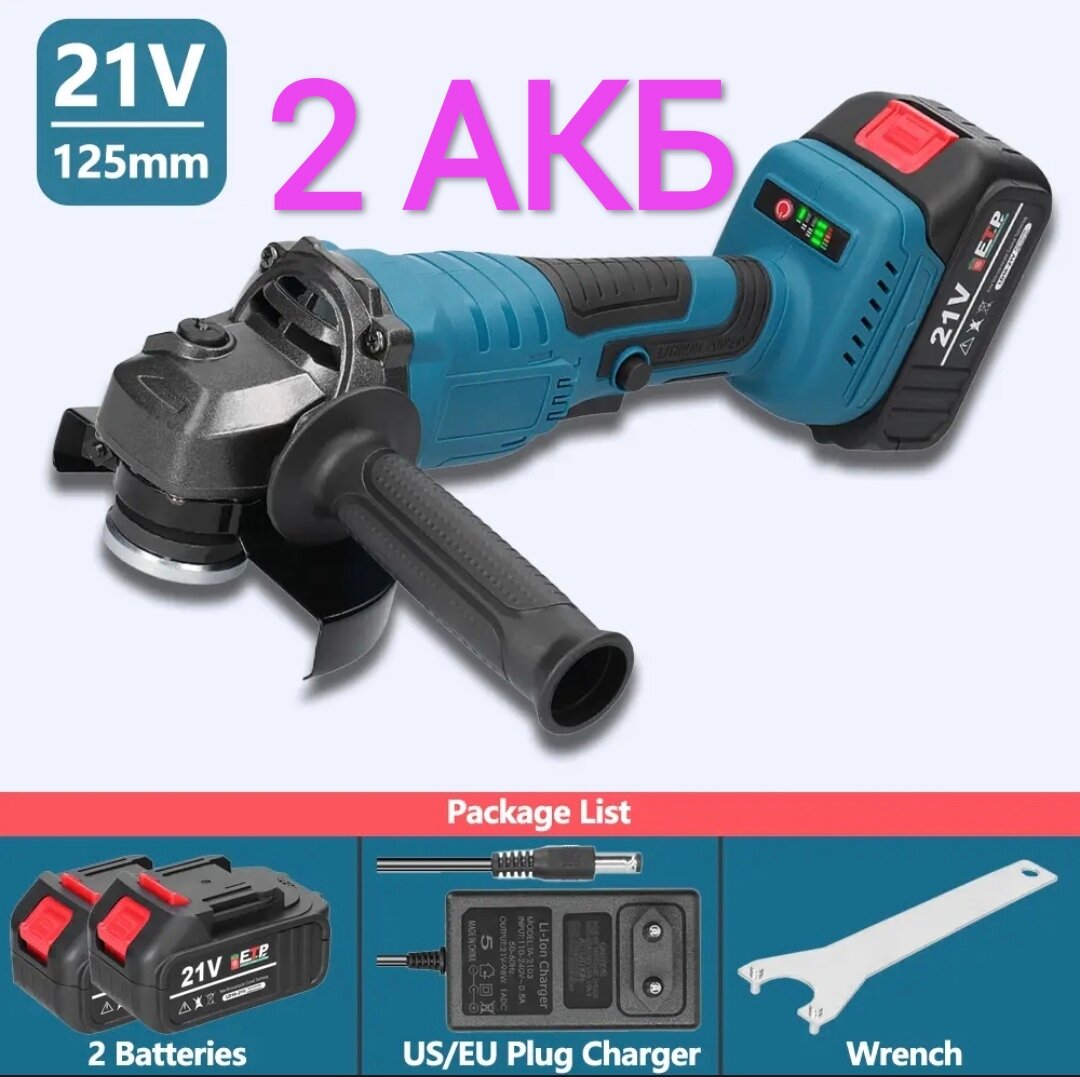 УШМ болгарка аккумуляторная, 2 АКБ, безщеточная, 125 мм информация: