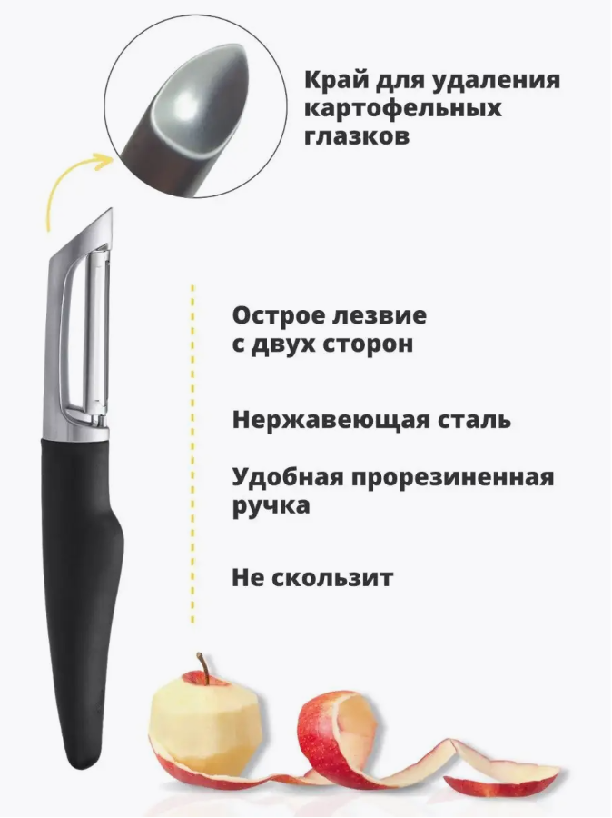 | Особенности | мытье в посудомоечной машине / нескользящая ручка / плавающее лезвие / с удалителем сердцевины |
