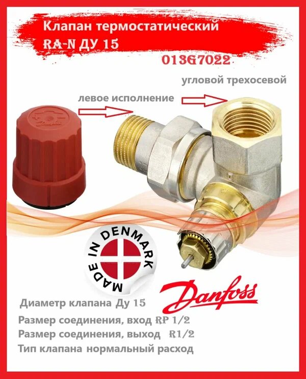 Отзывы на Клапан термостатический RA-N ДУ 15 угловой трехосевой, левое исполнение Danfoss 013G7022 RTR-N