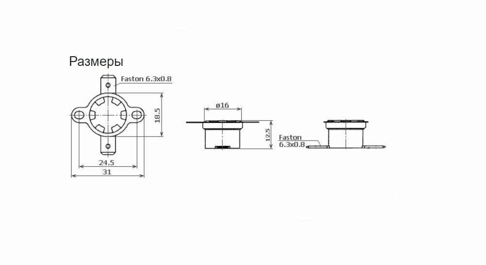 Термостат биметаллический KSD303-90 NC 90C 250V 16A с ручным сбросом комплект из 3 шт. 605 ₽