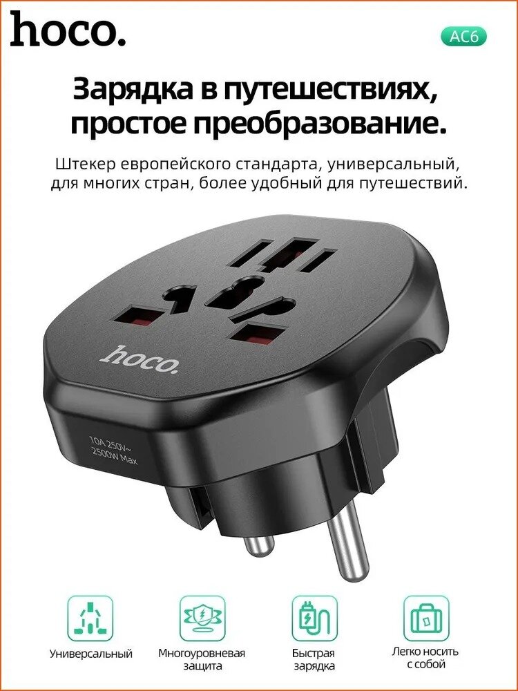 Евро-Переходник / переходник на все виды розеток / Евровилка / Универсальный сетевой переходник адаптер для евророзетки 10A 100 - 250V черный информация: