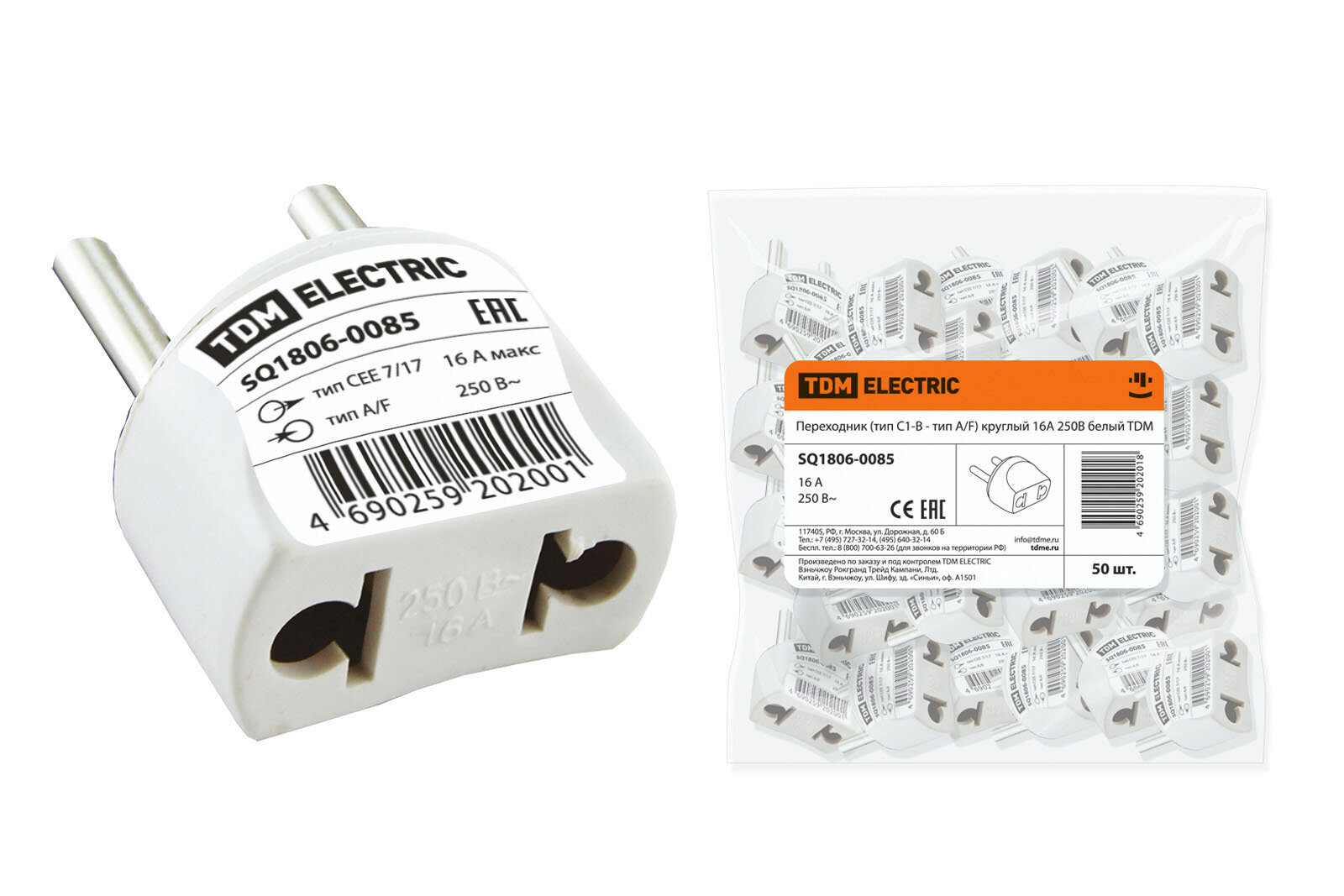 10 цен на Переходник (тип С1-В - тип A/F) круглый 16A 250В белый TDM