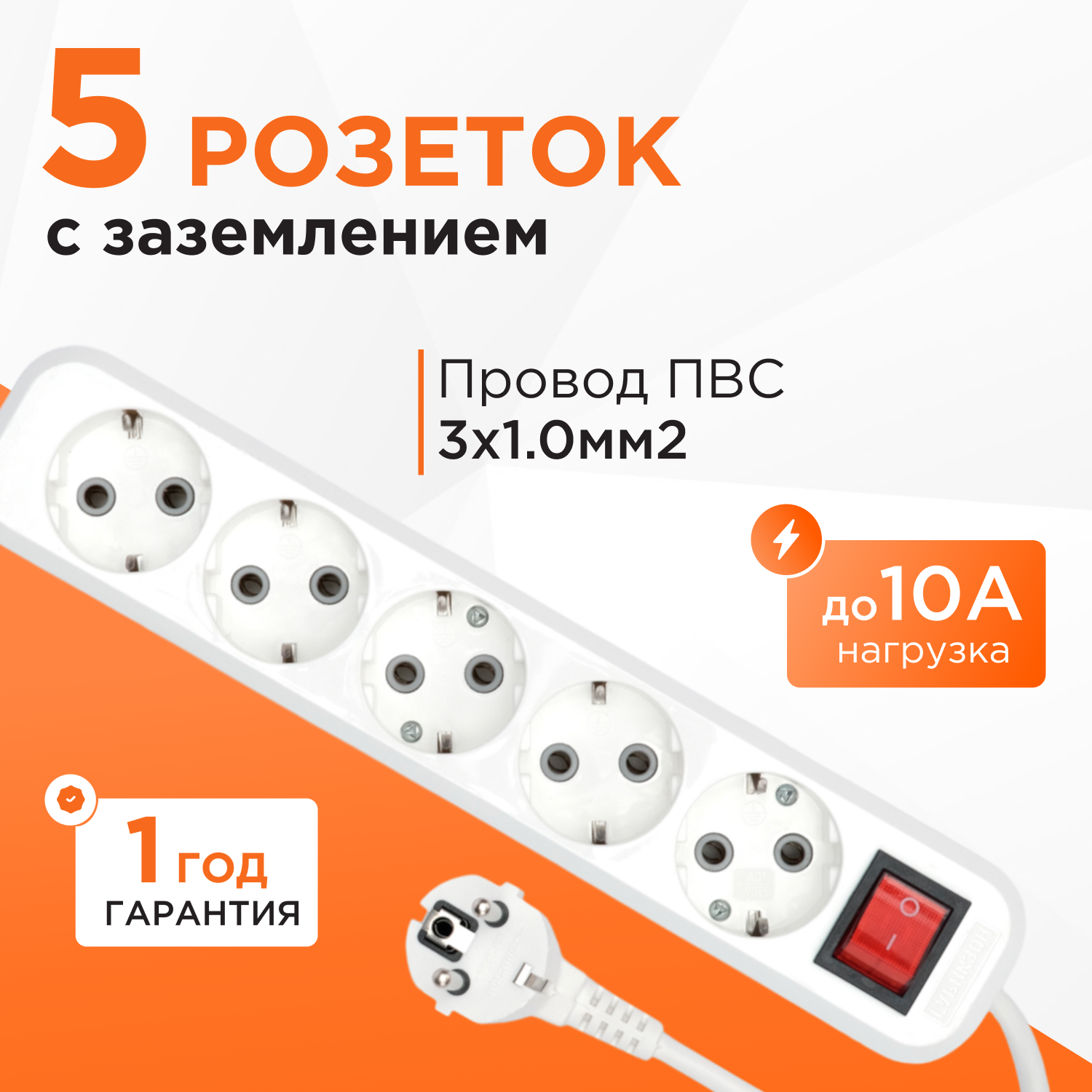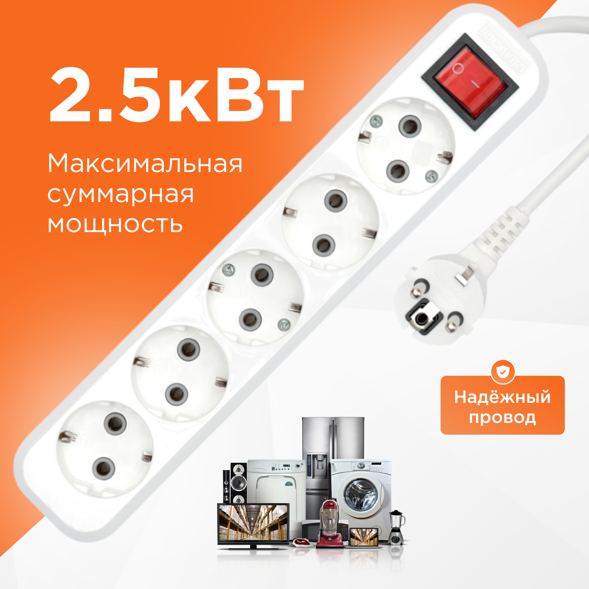 Удлинитель сетевой 5 розеток 5 метров информация: