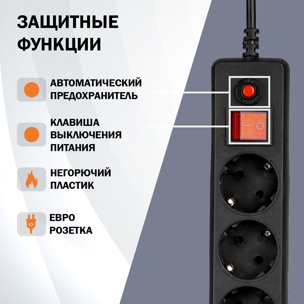 Сетевой фильтр FILUM FL-SP3-5-3M-BL, 3 метра 5 розеток с заземлением информация: