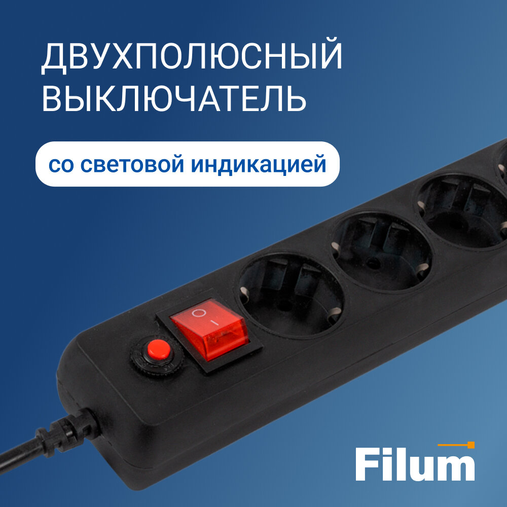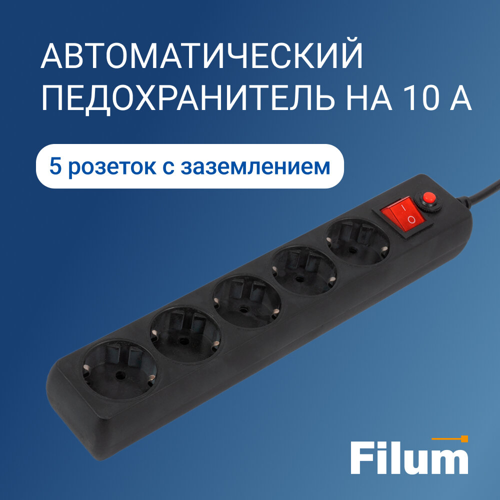 Сетевой фильтр FILUM FL-SP3-5-1.8M-BL, 1,8 метра 5 розеток с заземлением 479 ₽