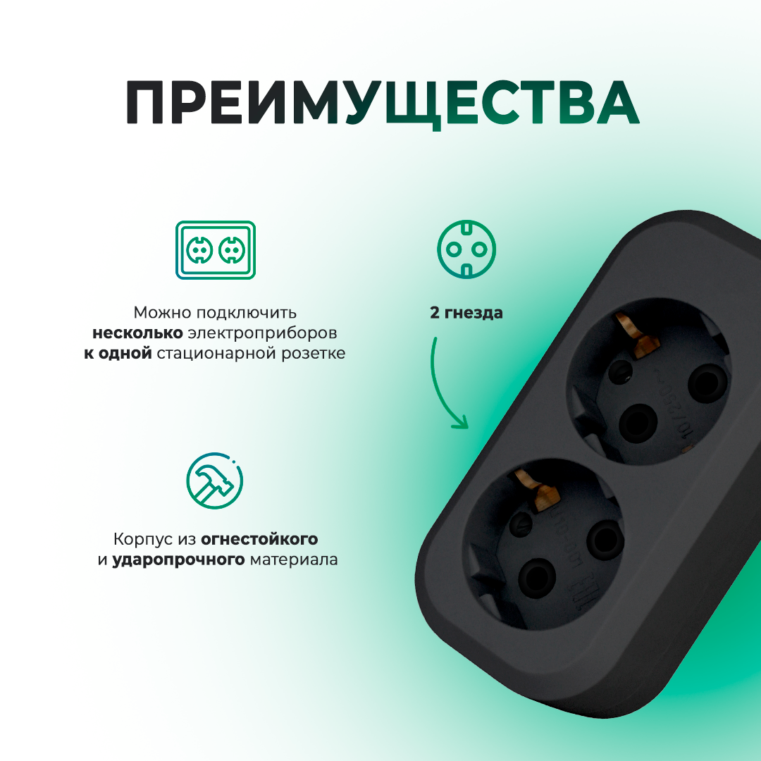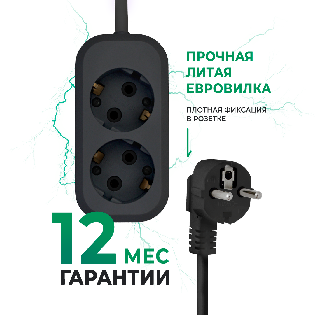 Отзывы на Удлинитель сетевой Progix 2 розетки, 2 метра, с заземлением, без USB, для дома и офиса, черный