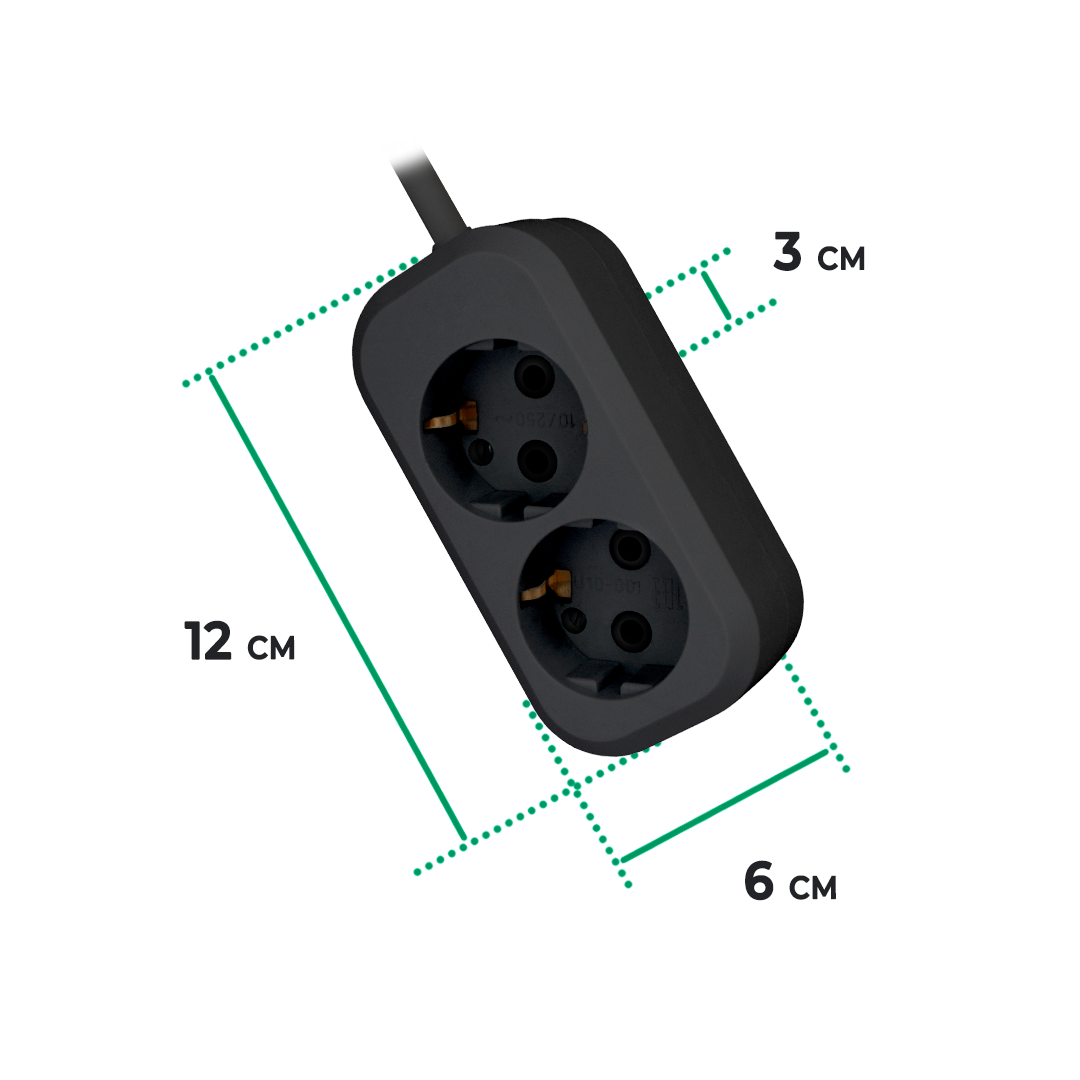 Удлинитель сетевой Progix 2 розетки, 2 метра, с заземлением, без USB, для дома и офиса, черный информация: