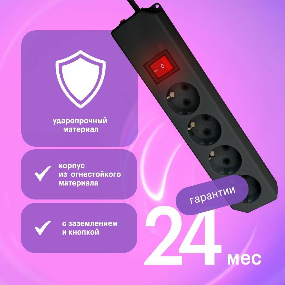 Отзывы на Cетевой фильтр - удлинитель Progix 4 розетки с заземлением, 10А/2кВТ, 2 метра, с выключателем, с предохранителем, без USB, черный