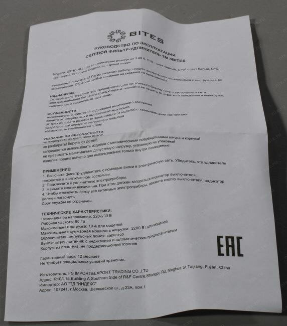 | Тип | сетевой фильтр |