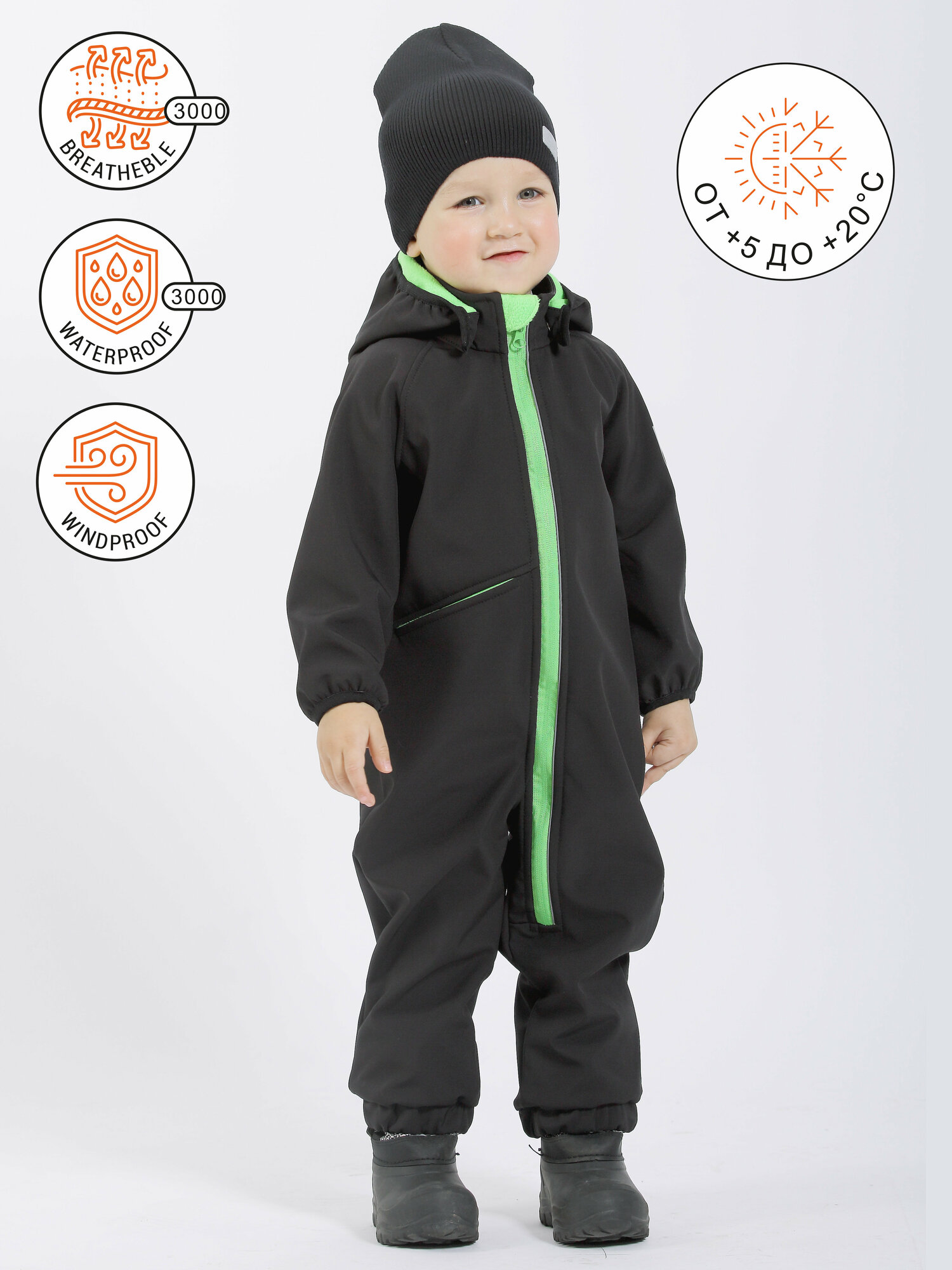 Комбинезон Softshell ARTEL Гарсо черный/зелеоный неон, размер 80 4 430 ₽