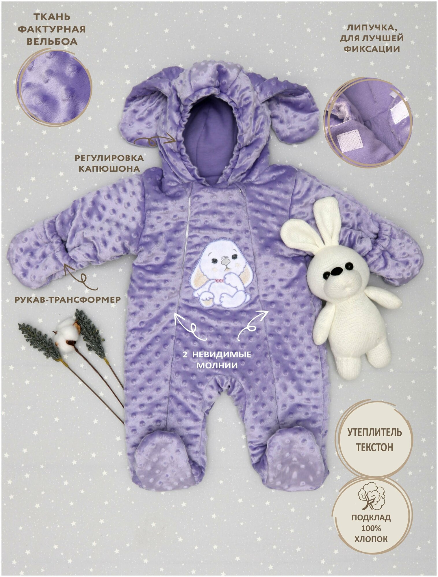 Отзывы на Комбинезон "Зайка" (вельбоа, утепленный)6-3154В- 20/62 - фиолетовый