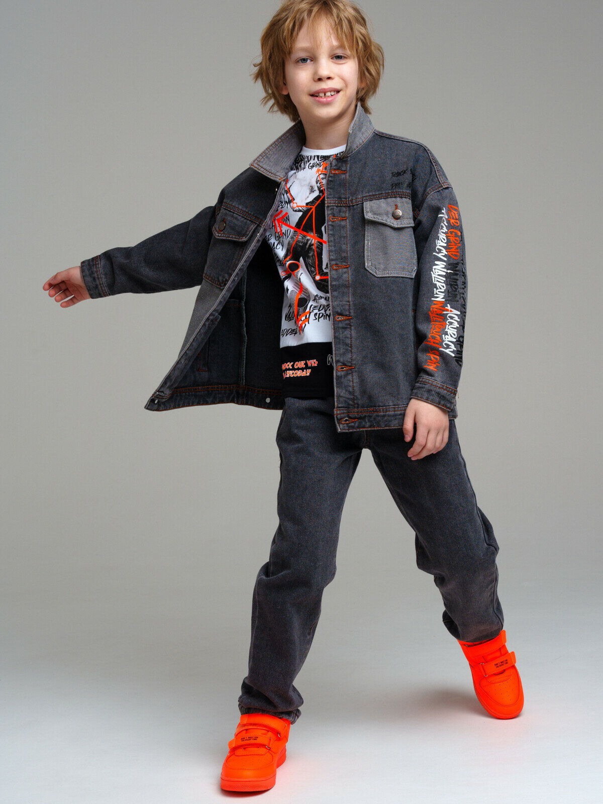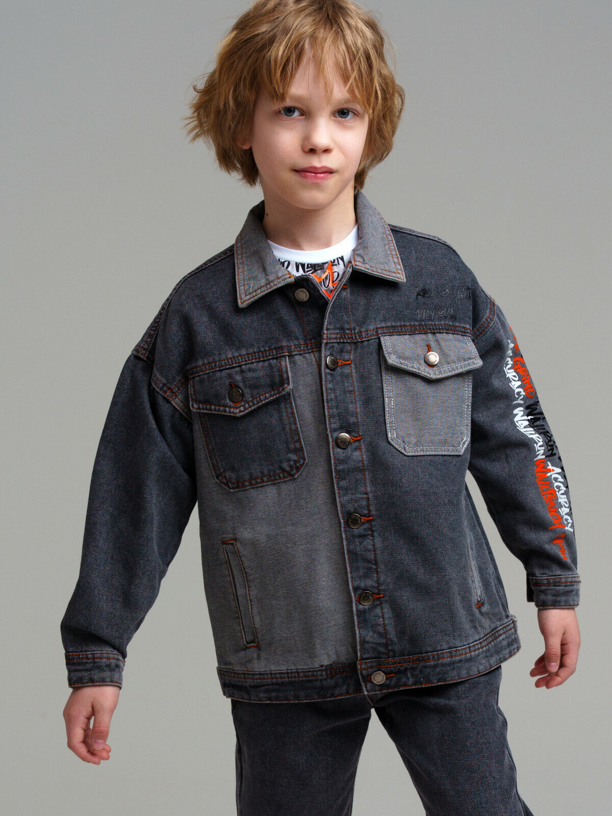 Куртка джинсовая для мальчика PlayToday, размер 128, темно-серый 3 219 ₽