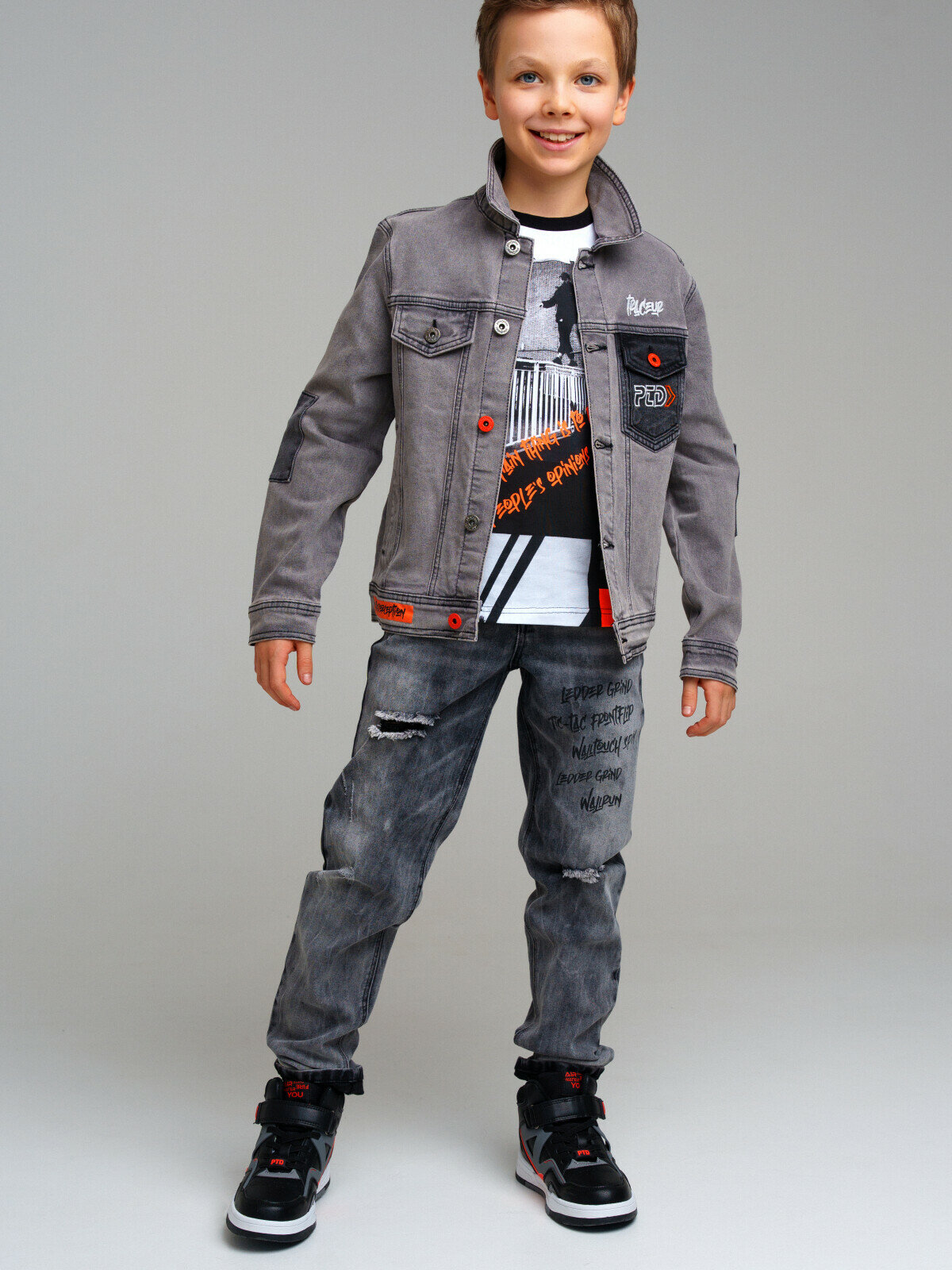 Куртка джинсовая для мальчика PlayToday, размер 176-36-84, серый информация:
