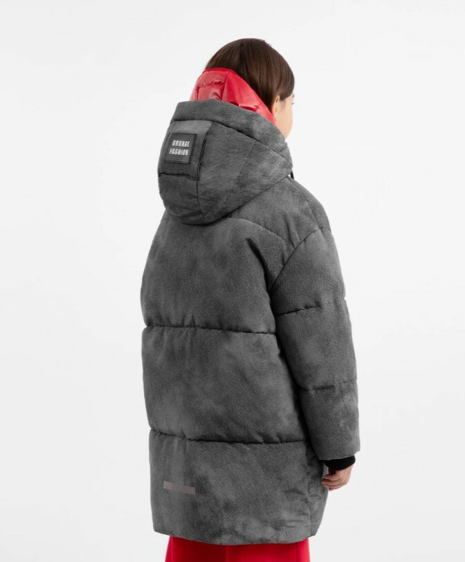 Пальто демисезонное на искусственном пуху с отстёгивающейся манишкой серое для девочки Gulliver, р.146, мод.22407GJC4502 информация: