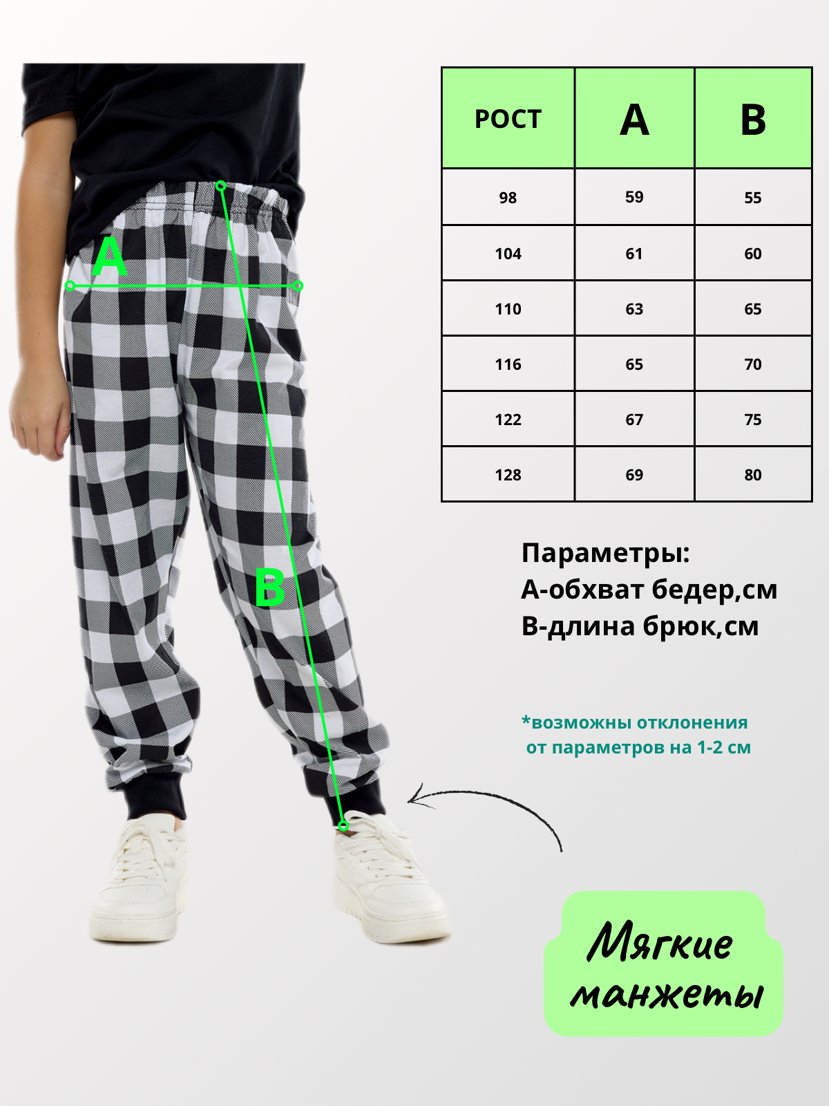 10 цен на Спортивные легкие брюки, черно-белая клетка, размер 104