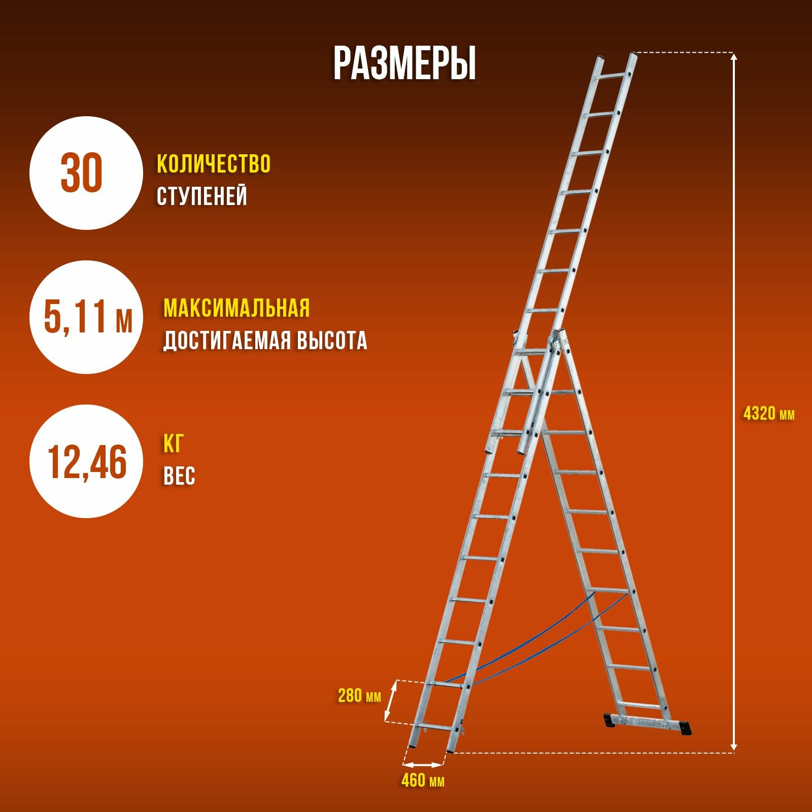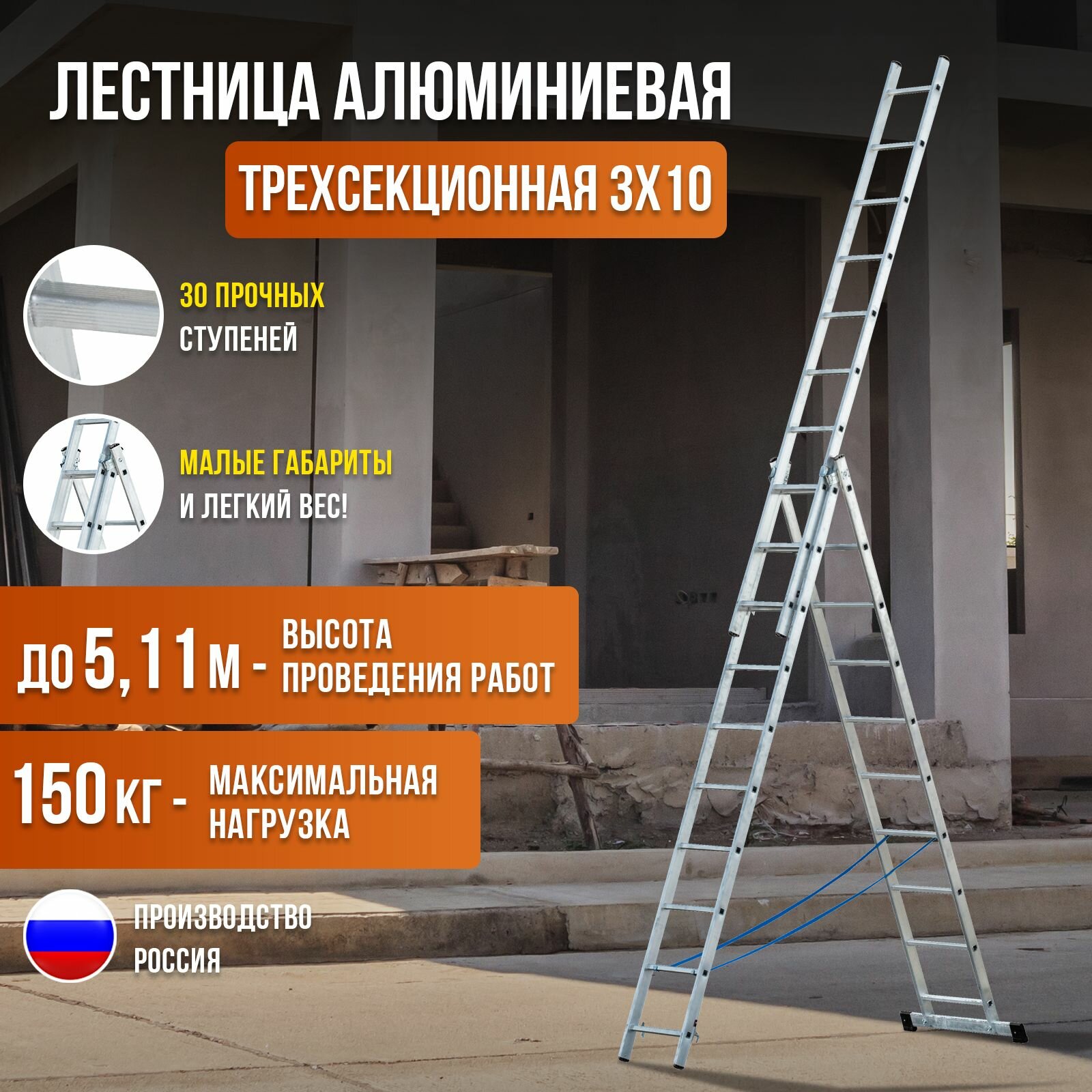 Трехсекционная универсальная лестница ALVEX 3х10 информация: