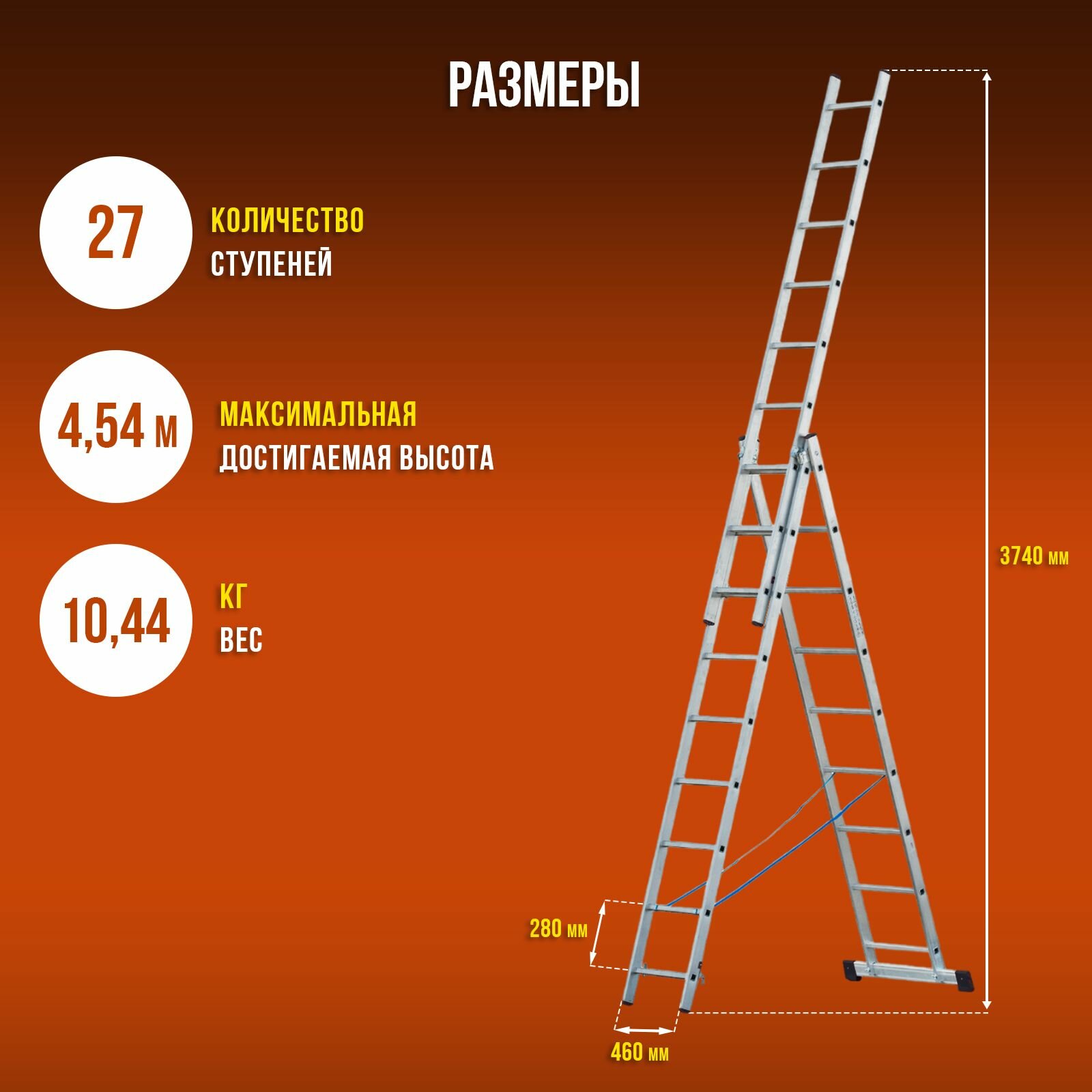 Трехсекционная универсальная лестница ALVEX 3х9 алюминий информация: