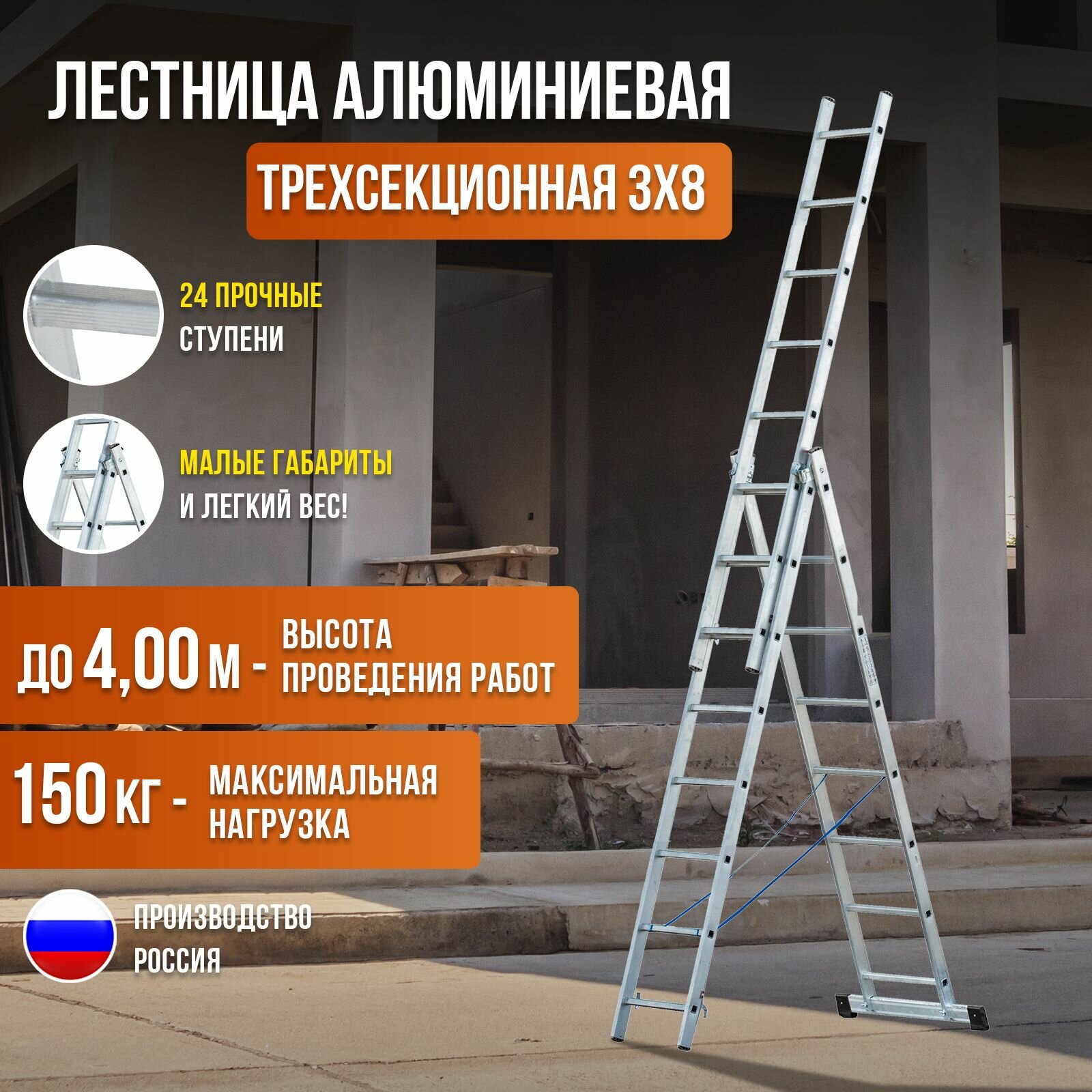 10 цен на Трехсекционная универсальная лестница ALVEX 3х8 алюминий три секции по восемь ступеней