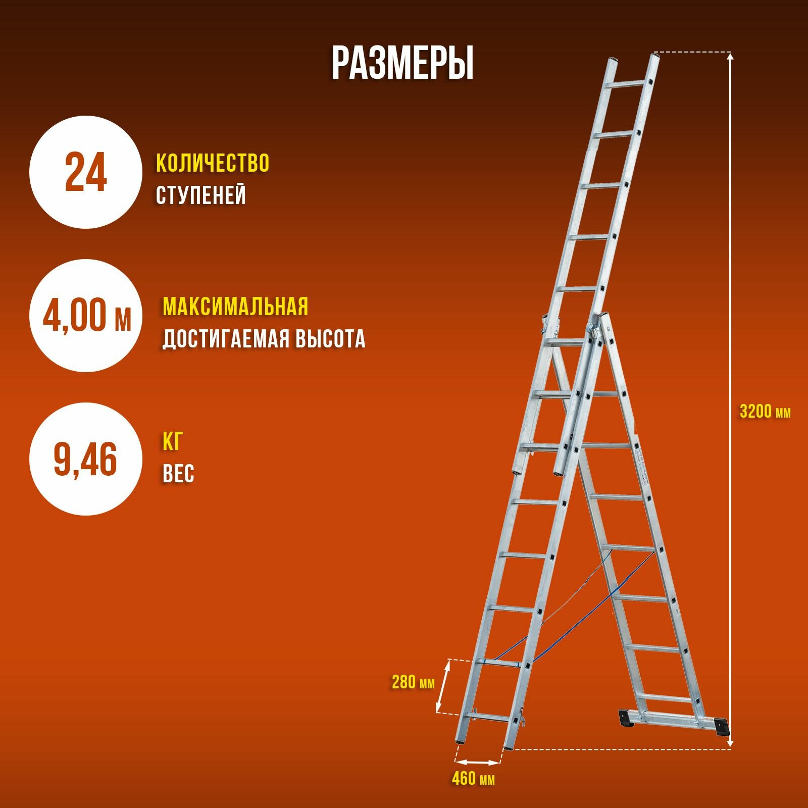 Отзывы на Трехсекционная универсальная лестница ALVEX 3х8 алюминий три секции по восемь ступеней