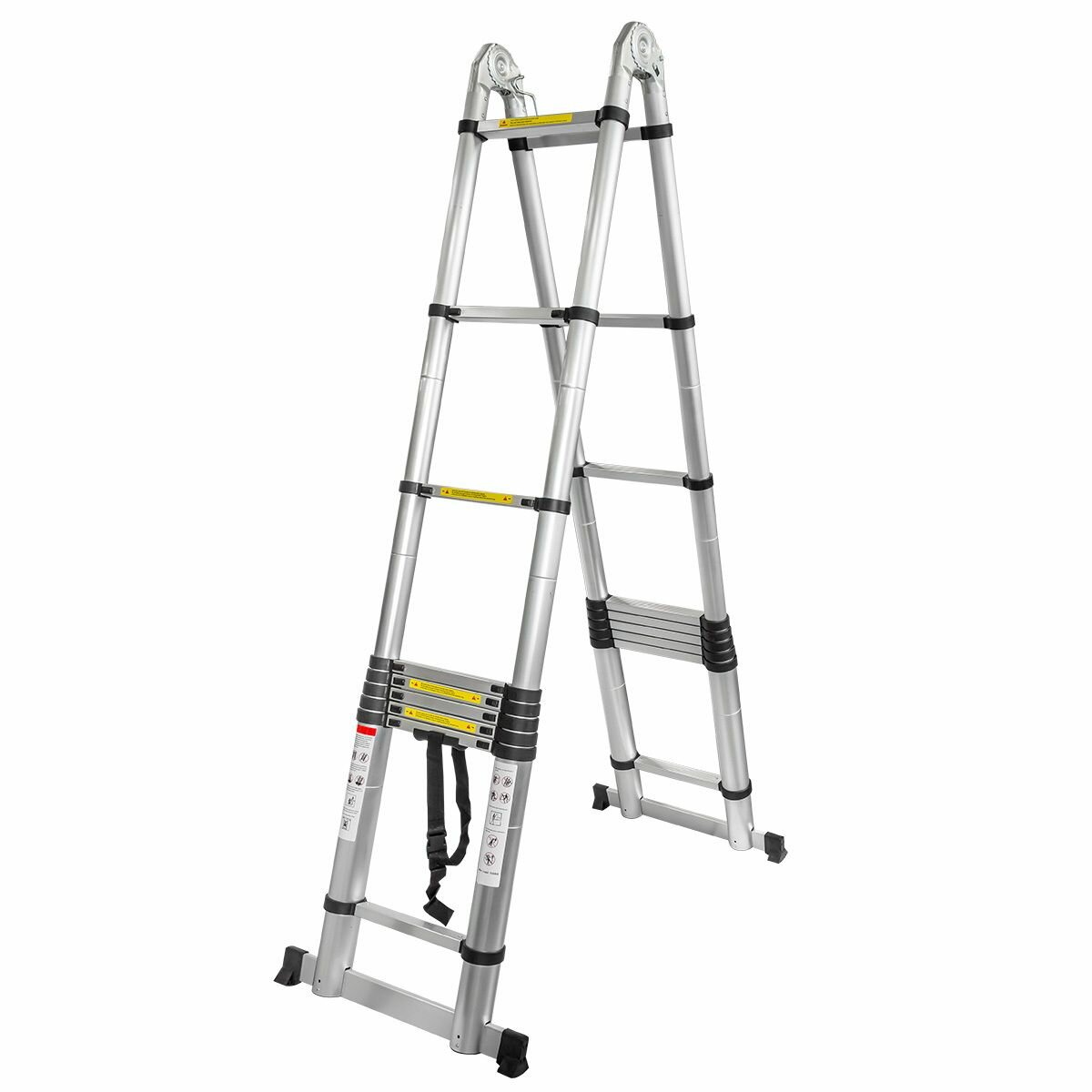 10 цен на Лестница комбинированная телескопическая алюминиевая двухсекционная (3.6+3.6м,9+9ступенек, max нагрузка 150кг, вес 25.2кг) Forsage F-UP360-M