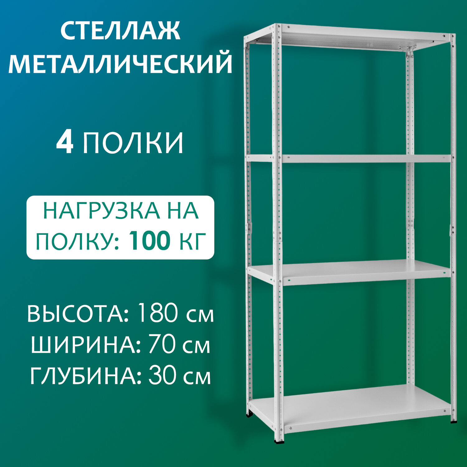 Стеллаж металлический 180х70х30 см, 4 полки информация: