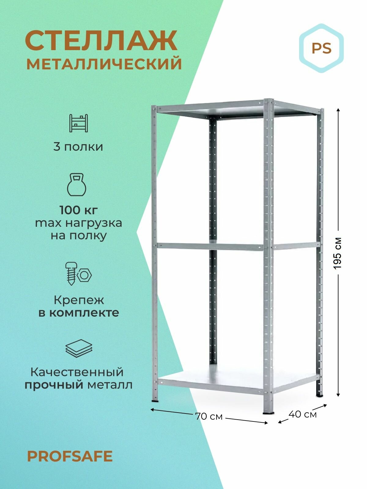 Стеллаж металлический PS 70х40х195 см, 3 полки, серый. Модульный Универсальный Напольный информация: