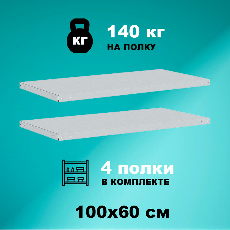 Комплект полок для стеллажей СТМ-140 100x60 см (4 шт.), нагрузка до 140кг на полку информация: