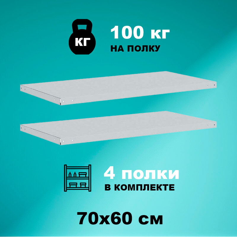 Комплект полок стеллажа МС-500 70х60 (4 шт.), нагрузка до 100кг на полку информация: