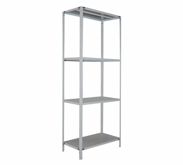 Стеллаж металлический серебристый PS 150KD/75Х30/4, Модульный Универсальный, 4 полки, 145x75x30 см, Profsafe