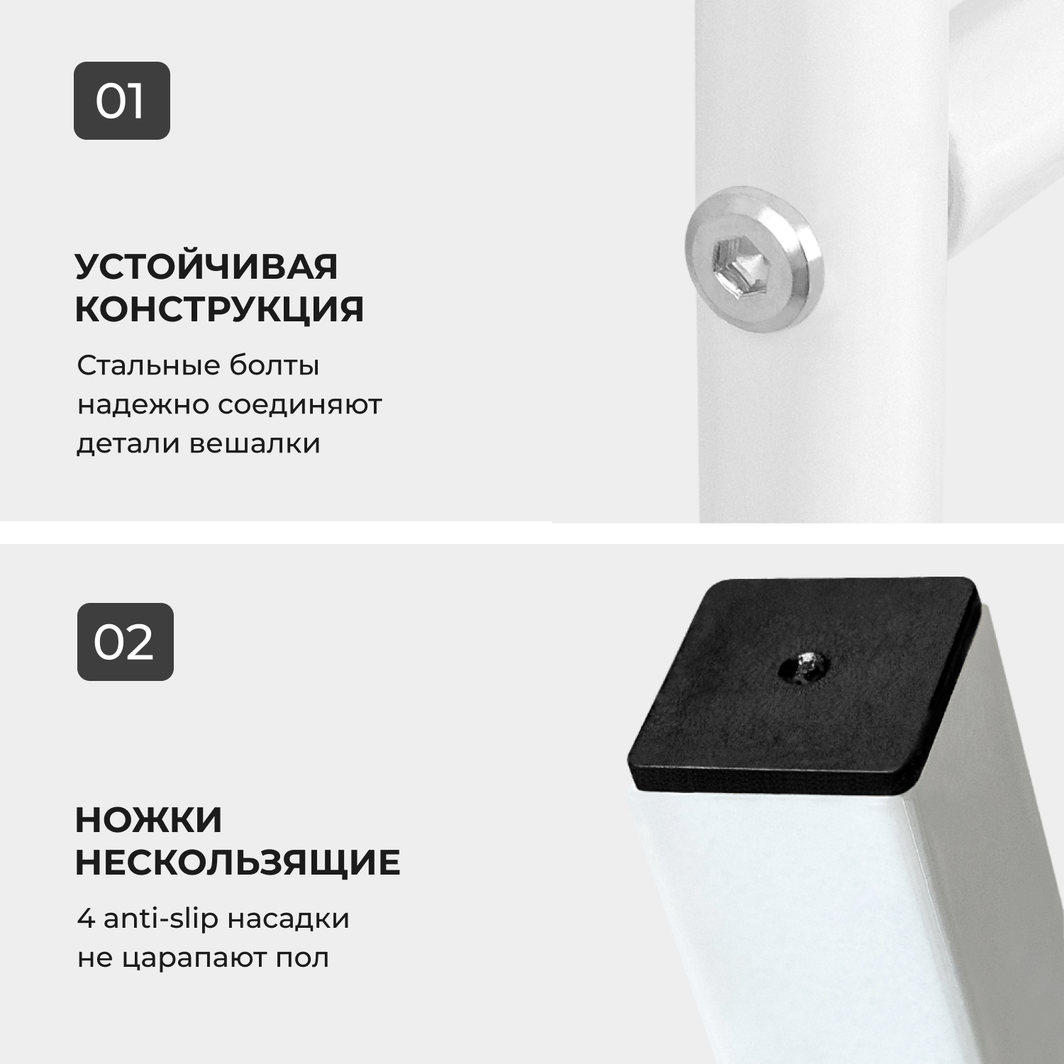 | Дополнительная информация | высота меньшей штанги 132 см; нескользящие накладки на ножки |