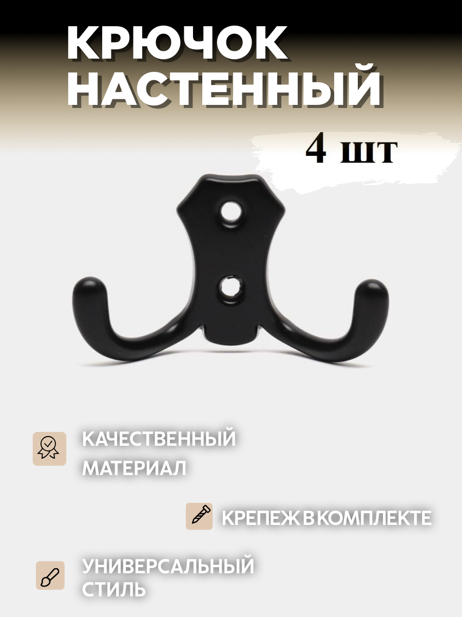 Крючок двухрожковый, черный, 4 шт информация:
