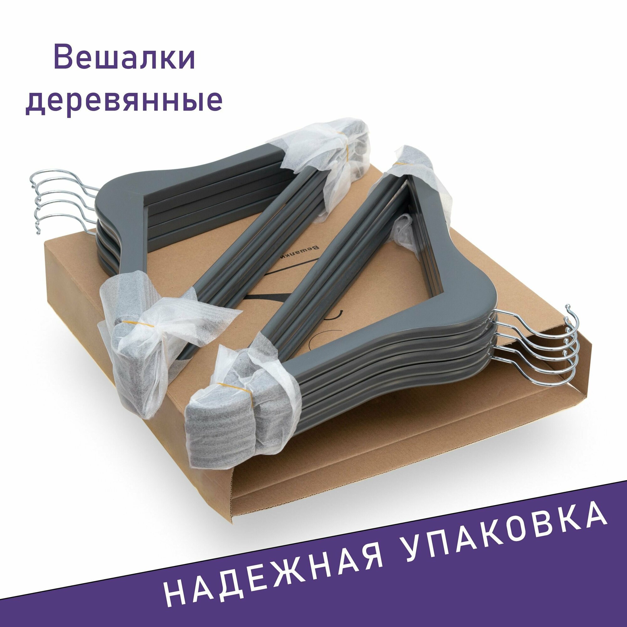Отзывы на Вешалки для одежды, Formula Tepla, деревянные, 10 шт, цвет серый