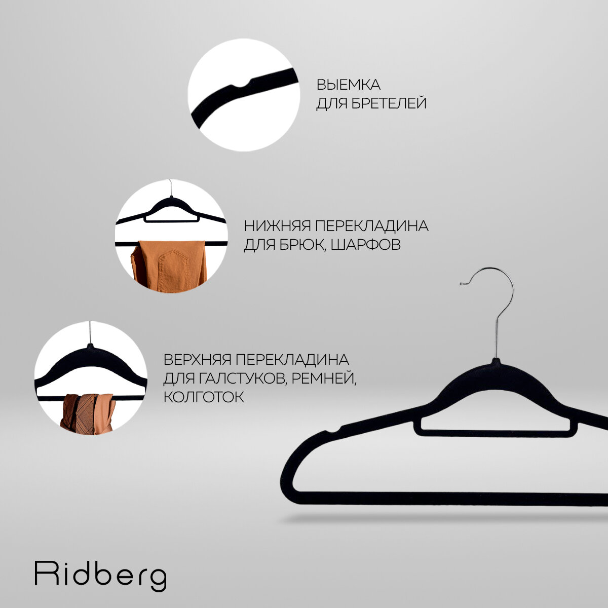 Вешалка-плечики для одежды Ridberg Velvet 50 шт. (Black) 2 120 ₽