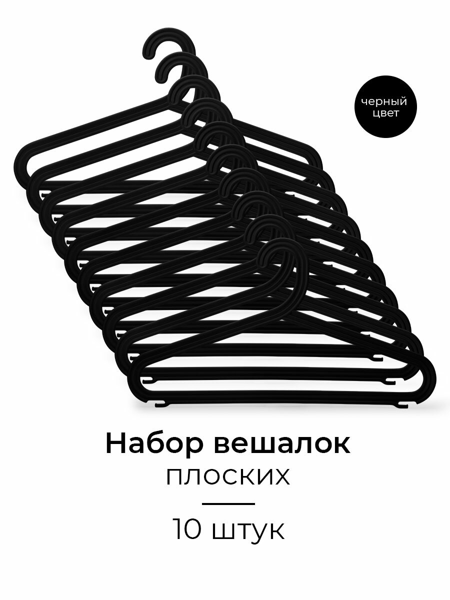 Вешалки-плечики для одежды, набор вешалок плоских р.48-50, 10 шт, черные информация:
