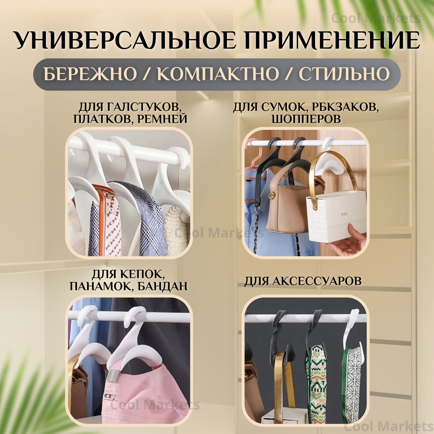 10 цен на Вешалки плечики для сумок и аксессуаров, крючок органайзер для сумки, рюкзака, галстука, набор 5шт черные