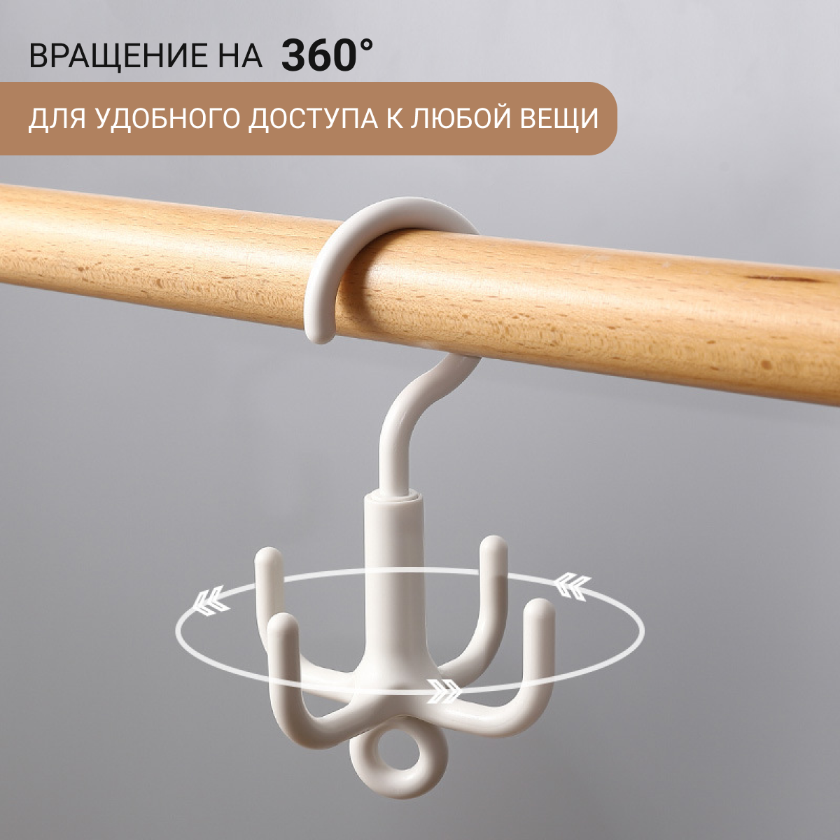 10 цен на Вешалка органайзер с крючками для ремней и галстуков, шарфов, шапок и аксессуаров, 360 градусов, белый, Zur-Kibet