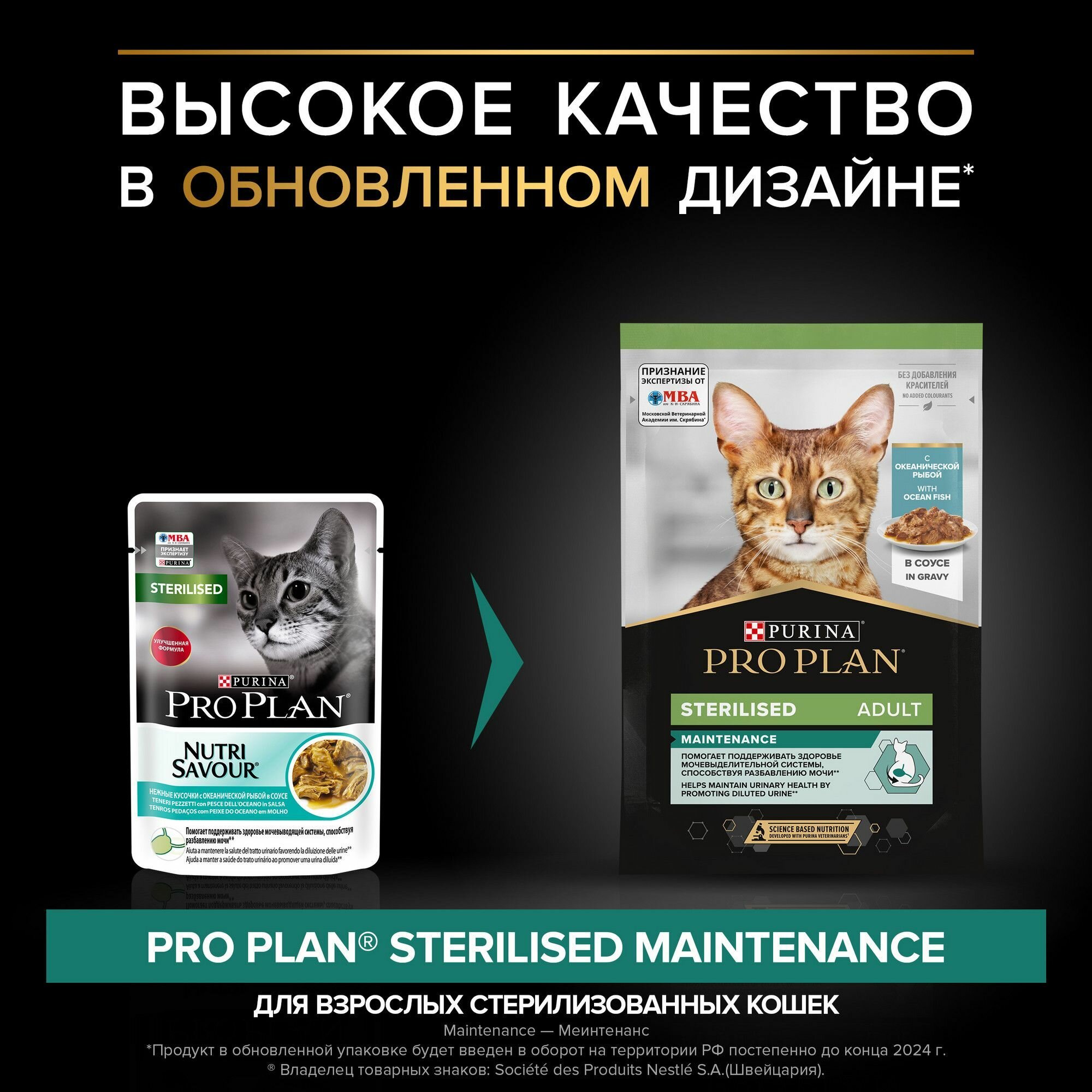 Влажный корм PRO PLAN Sterilised Maintenance для взрослых стерилизованных кошек и кастрированных котов, с океанической рыбой в соусе, 85 г x 26 шт информация: