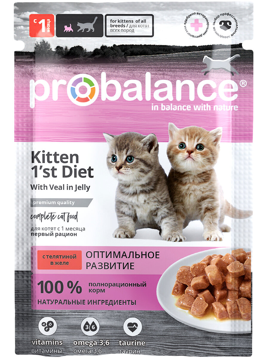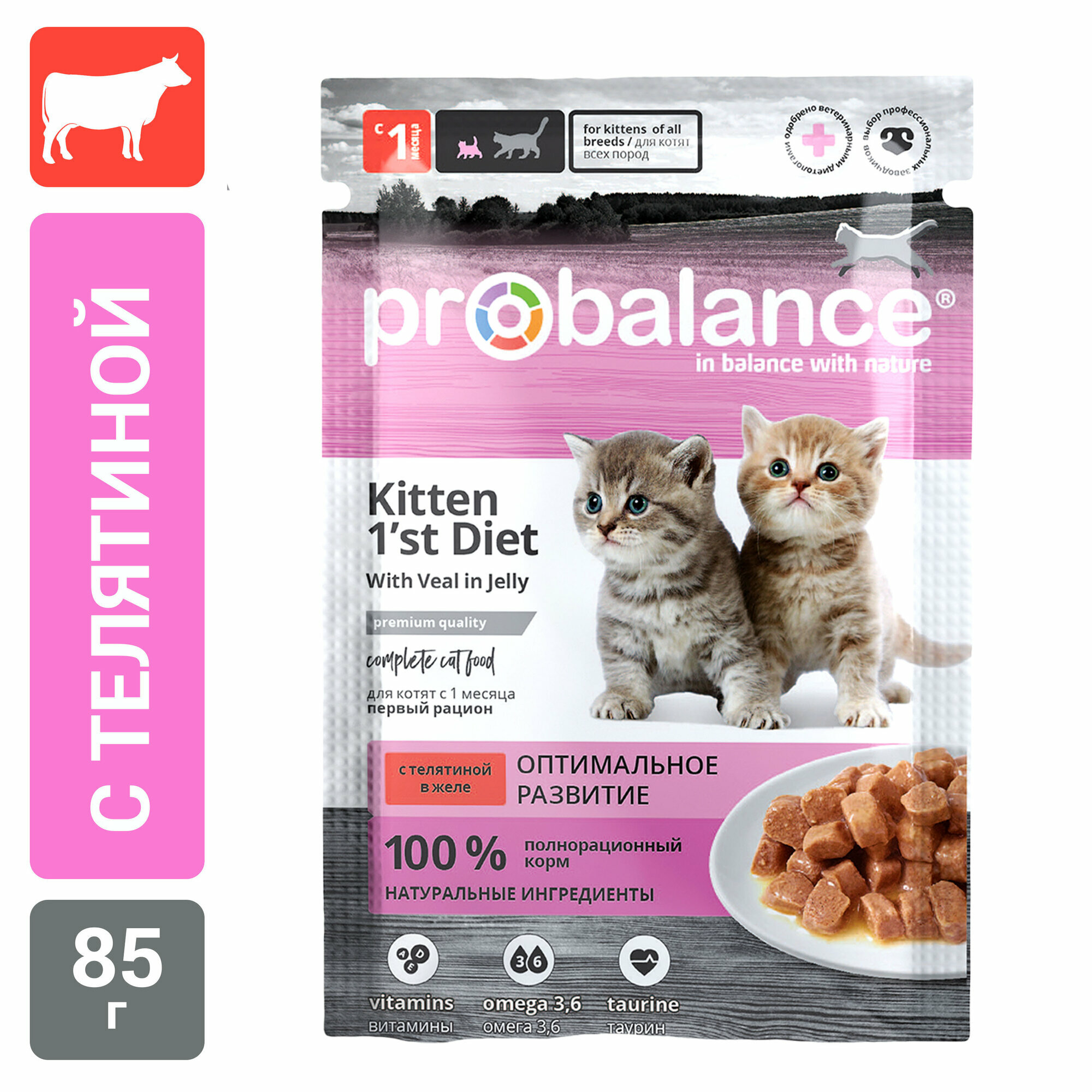 Влажный корм для котят ProBalance Kitten 1st Diet, с телятиной (пауч) 85 г +3 пауча в подарок информация: