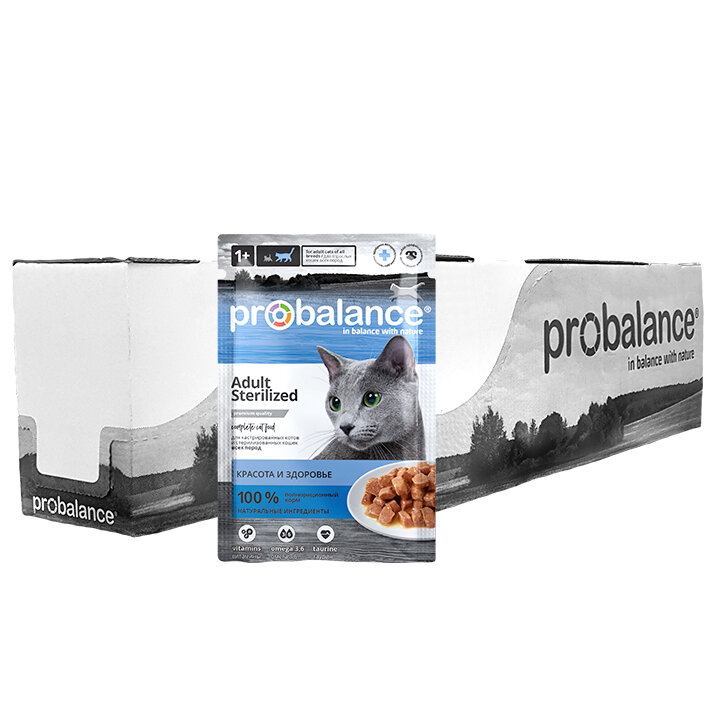10 цен на Влажный корм для стерилизованных кошек ProBalance Sterilized (пауч) 85 г + 3 пауча подарок