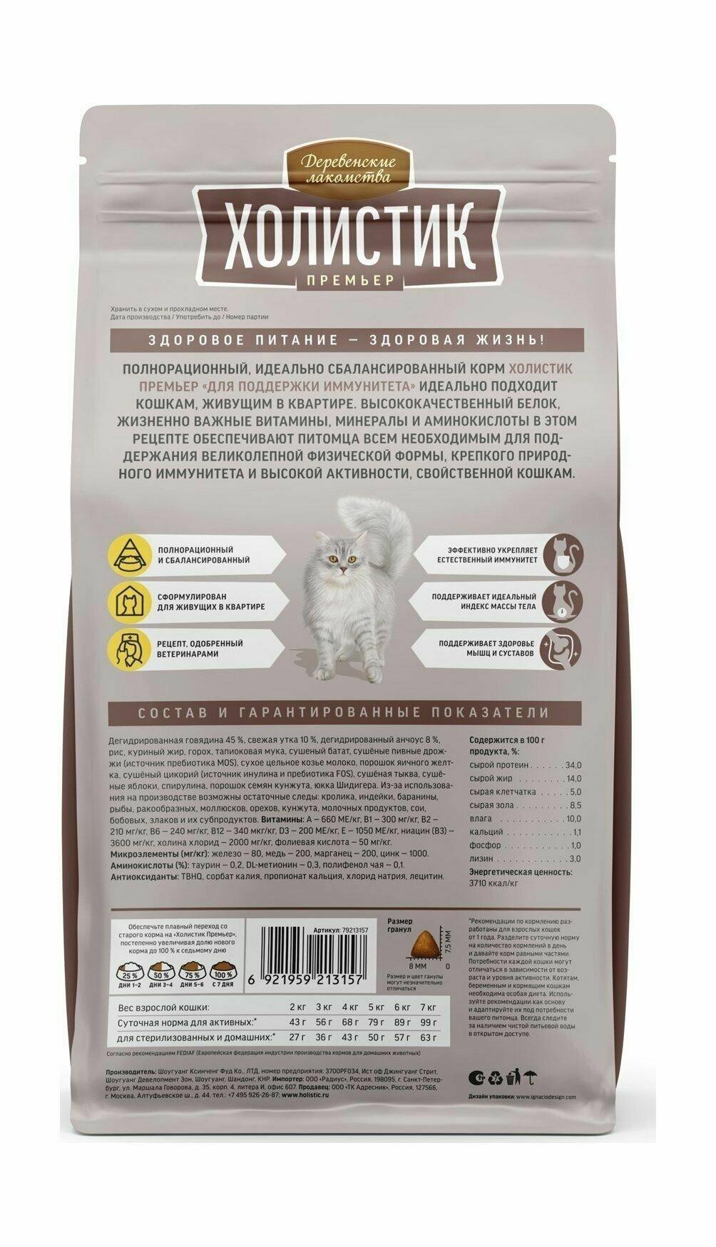 Деревенские лакомства Холистик Премьер Корм сух.говядина д/поддержки иммунитета д/кошек 2кг информация: