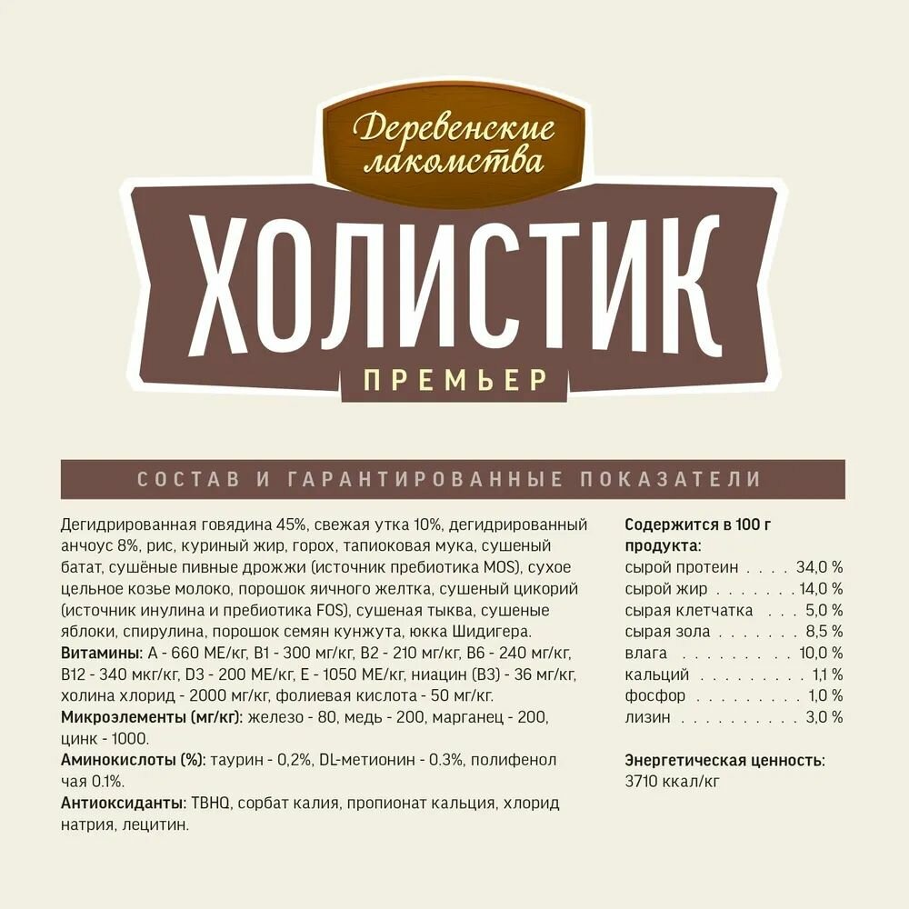 2кг+2кг Сухой полнорационный корм деревенские лакомства холистик премьер для поддержки иммунитета кошек с говядиной информация: