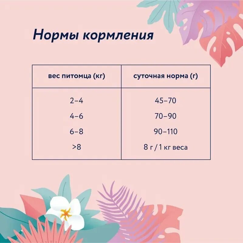| Дополнительная информация | Переход с предыдущего рациона осуществлять постепенно, небольшими порциями в течение 5-7 дней. При кормлении необходимо учитывать активность и аппетит животного. Корм должен быть комнатной температуры. Содержимое открытой упаковки хранить при температуре +5°С и использовать в течение 2 дней. У кошки всегда должен быть доступ к свежей питьевой воде. |