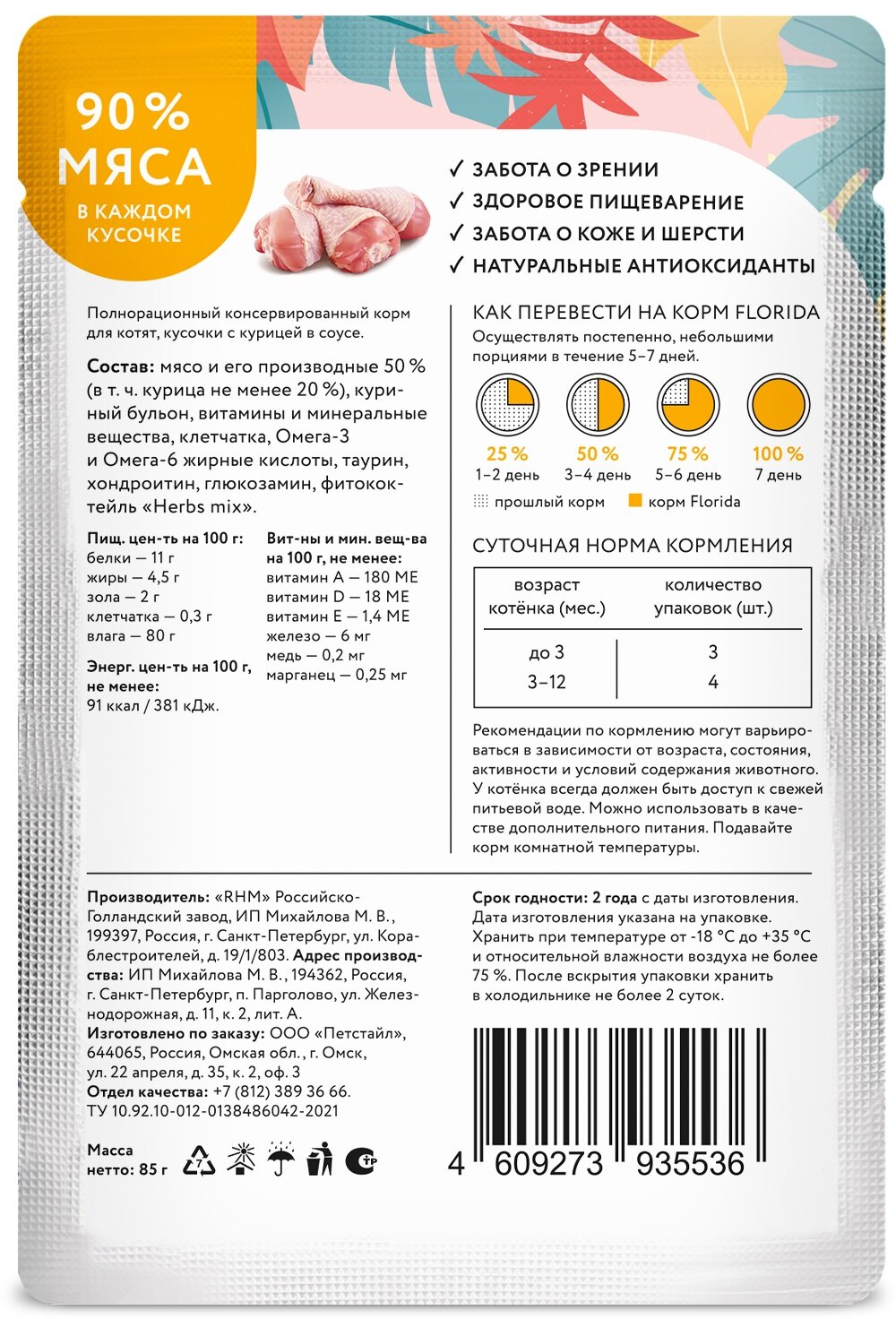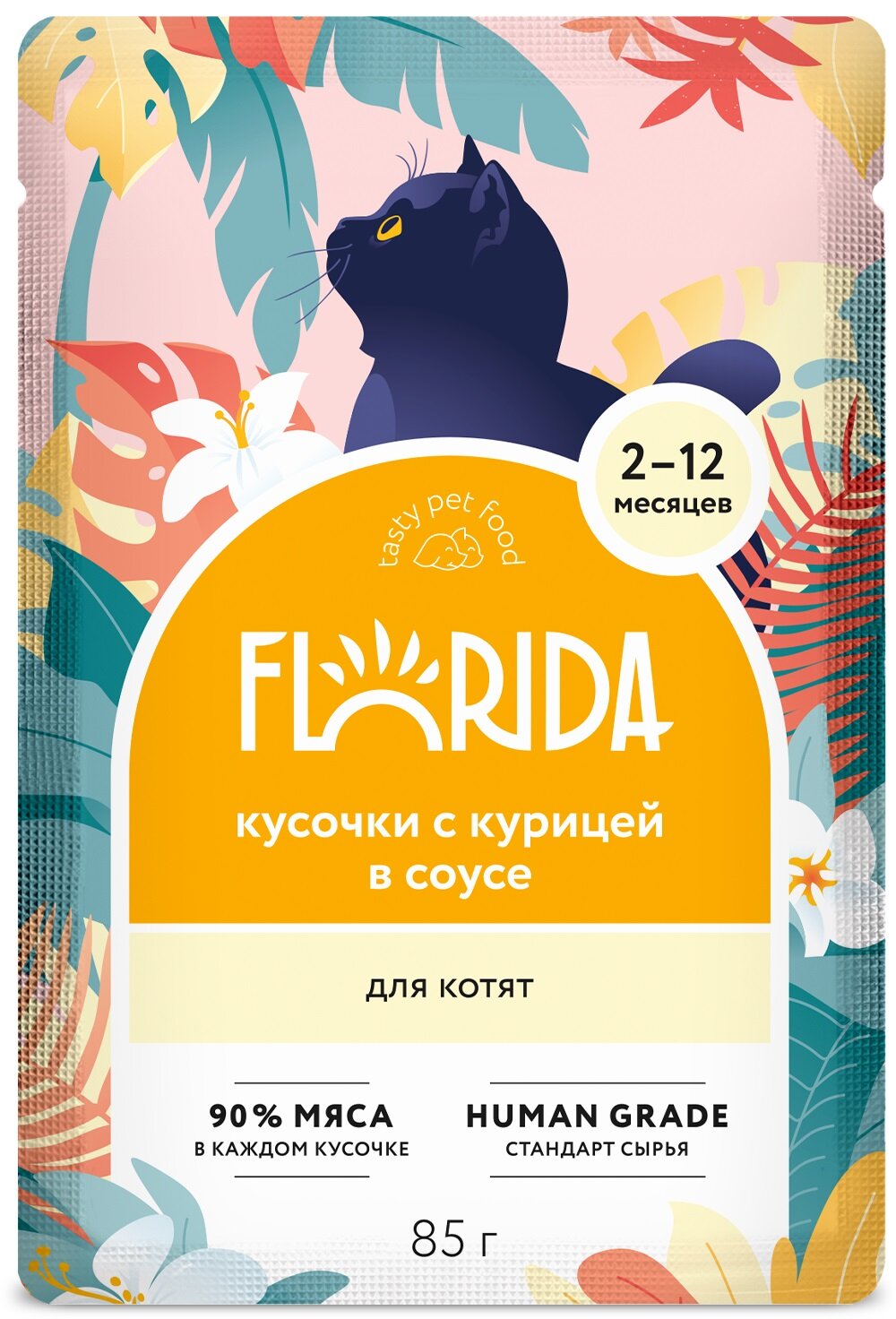 Florida паучи для котят (кусочки в соусе) Курица, 85 г. упаковка 12 шт информация: