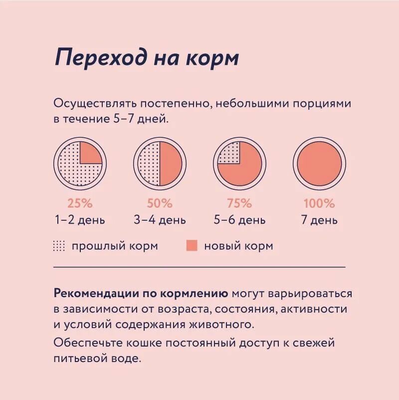 | Дополнительная информация | Переход с предыдущего рациона осуществлять постепенно, небольшими порциями в течение 5-7 дней. При кормлении необходимо учитывать активность и аппетит животного. Корм должен быть комнатной температуры. Содержимое открытой упаковки хранить при температуре +5°С и использовать в течение 2 дней. У кошки всегда должен быть доступ к свежей питьевой воде. |