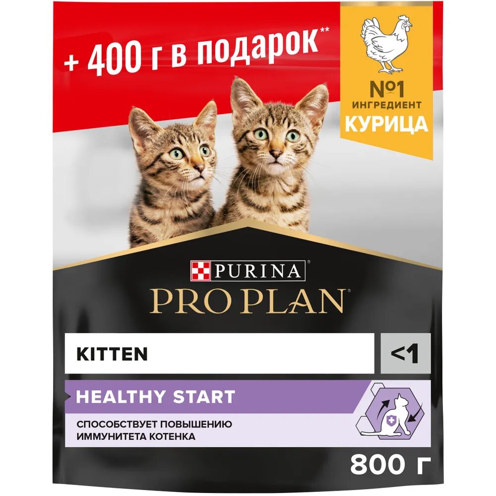 Сухой корм для котят Pro Plan Original OPTIStart, с курицей 400 г+ 400 г в подарок (800 г.) информация: