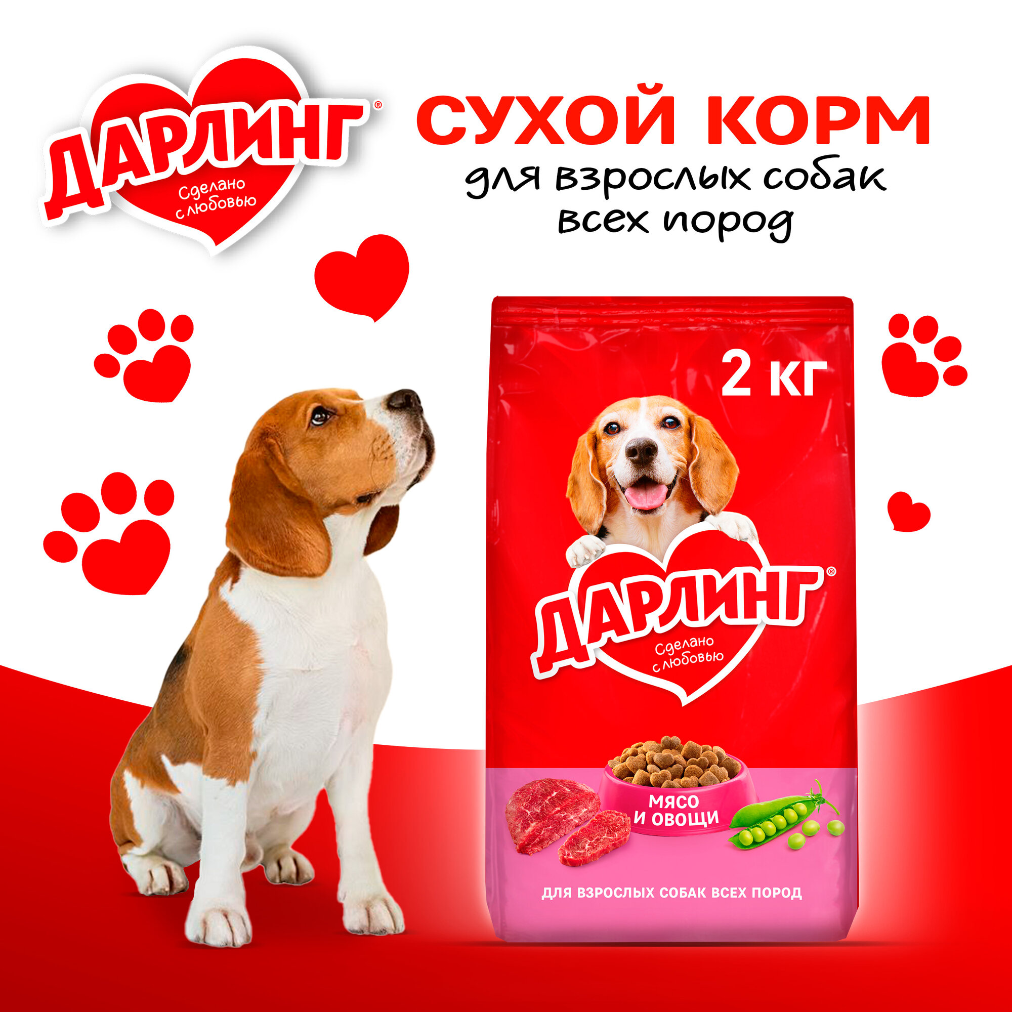 Сухой корм Дарлинг 2кг х 2шт, мясо и овощи, для собак любых пород, Darling