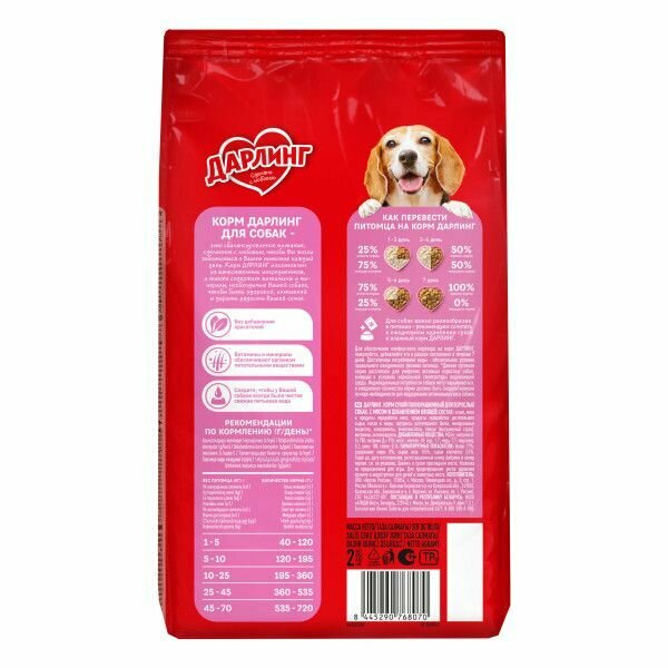 Сухой корм 2 кг с Мясом и Овощами Дарлинг для собак, 1 упаковка информация: